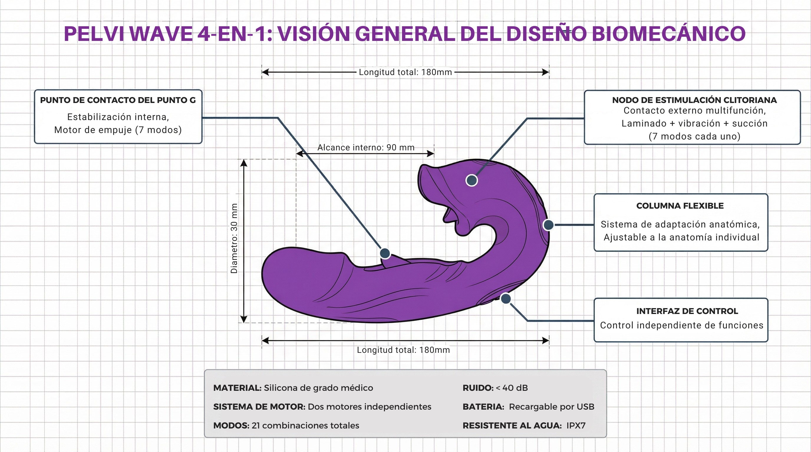 Nuestro estimulador íntimo está fabricado con silicona de grado médico, el mismo tipo de material utilizado en aplicaciones clínicas y quirúrgicas.